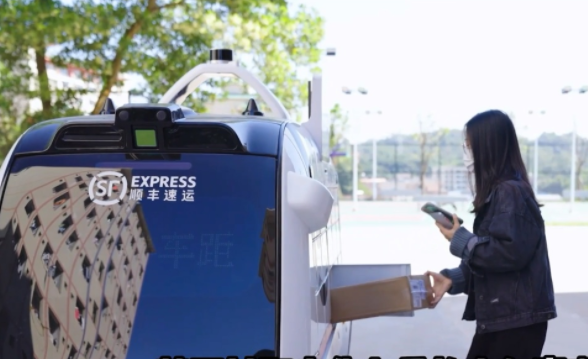 11月18日消息,近期,順豐無人車在廣州理工學院運營。順豐無人車將快件送到師生宿舍樓下,師生用手機掃碼即可取件。