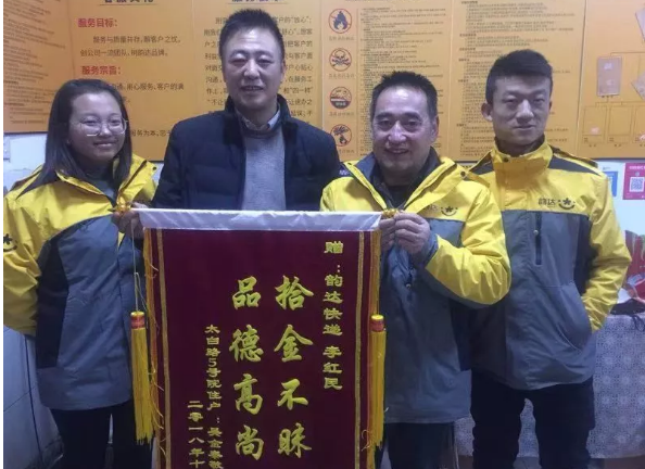 點(diǎn)贊|韻達(dá)快遞員拾金不昧,失主送錦旗表示感謝