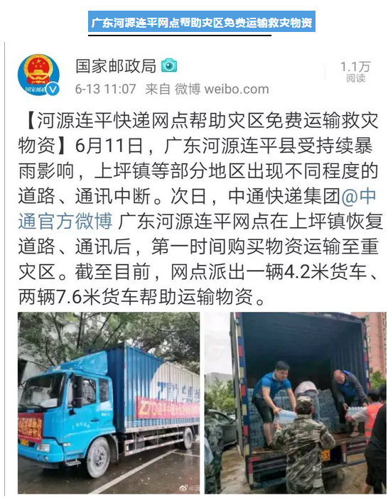 廣東河源連平網(wǎng)點幫助災(zāi)區(qū)免費運輸救災(zāi)物資