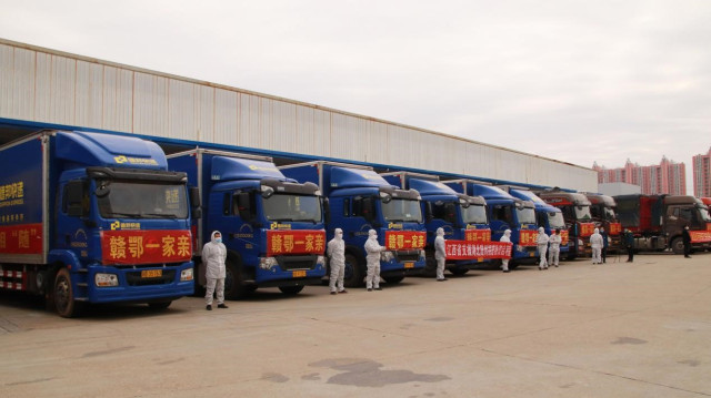 2月19日晚上9點(diǎn),由德邦快遞11輛貨車免費(fèi)承運(yùn)的一批總價(jià)值約1000萬元的物資,跨越550公里,從江西南昌抵達(dá)湖北隨州。