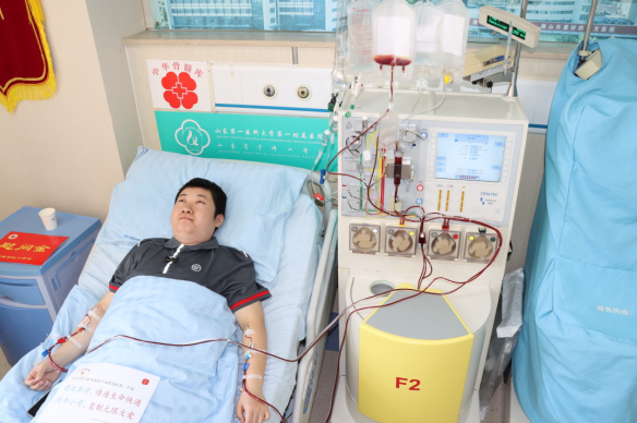 配型成功后,盧超發(fā)自內心地高興,他表示愿意盡快完成捐獻,助他人“綻放新生”。于是,5月9日,在山東第一醫(yī)科大學第一附屬醫(yī)院(山東省千佛山醫(yī)院),他順利完成造血干細胞采集。盧超的大愛善舉當天也引發(fā)諸多媒體關注,在采集完成后,接受媒體采訪時,盧超說:“捐獻造血干細胞是件既高尚又偉大的事,不僅僅是救治了一名患者,更是挽救了一個家庭?!彼転檫h方素未謀面的患者帶去生的希望,善莫大焉。