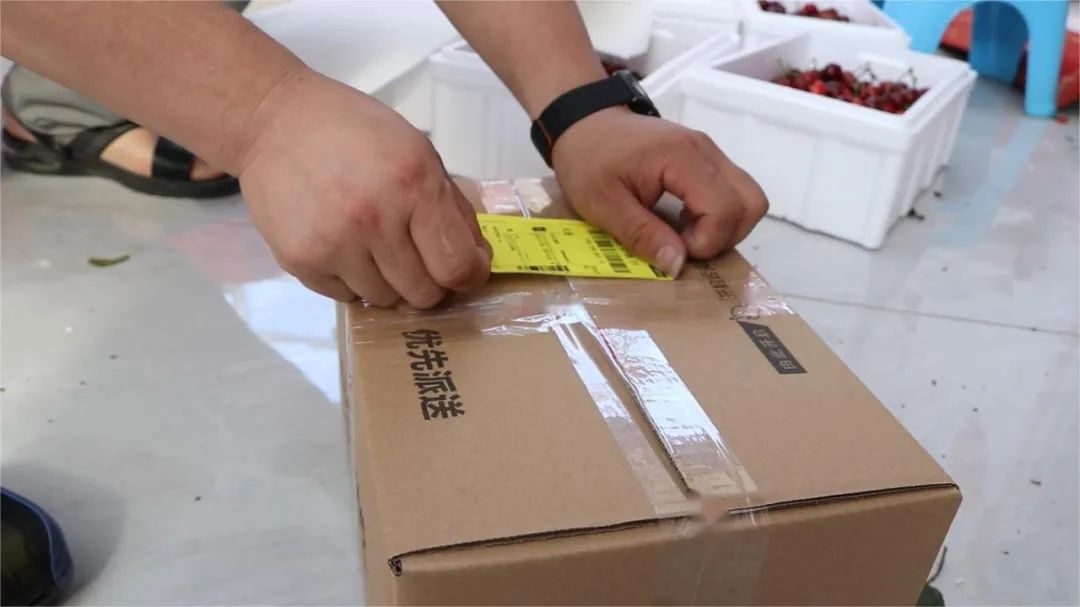 快遞小哥使用加厚瓦楞紙箱包裝,減少櫻桃破損率