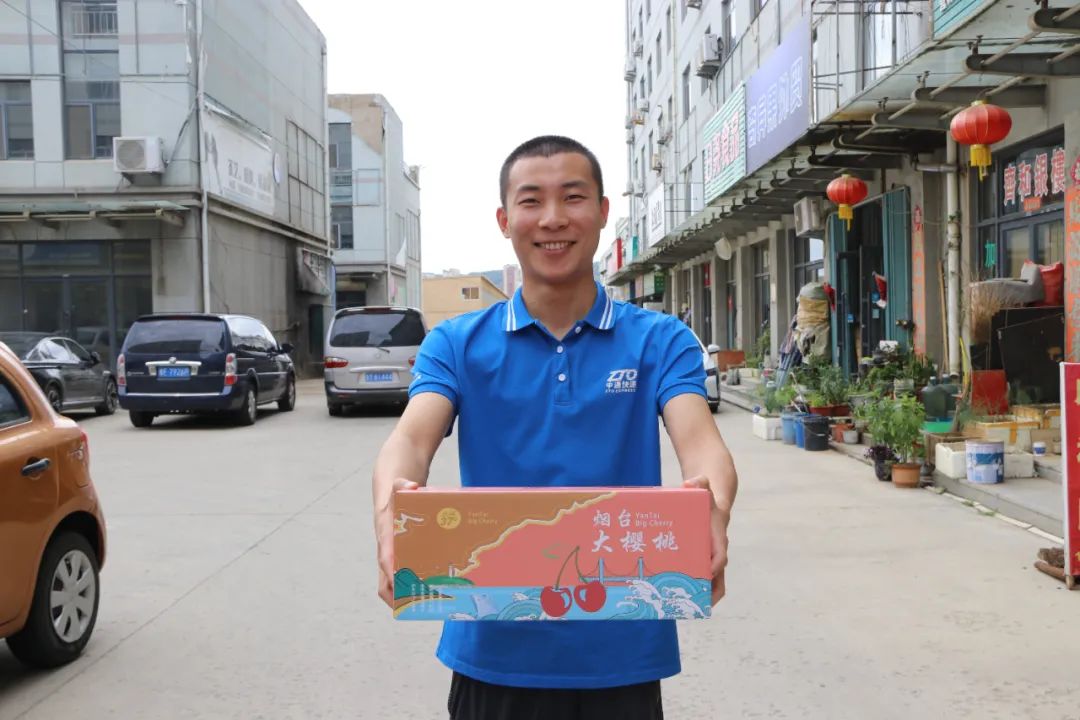 5月上旬,煙臺大櫻桃成熟前夕,煙臺網(wǎng)點負責人吳智勇就著手準備承運工作,選派有經(jīng)驗的員工,前往產(chǎn)區(qū)幫農(nóng)戶采摘、選果,傳授打包技巧和包裝細節(jié),為農(nóng)戶提供了“收寄一條龍服務(wù)”。如此一來,不僅縮短了櫻桃從枝頭到餐桌的時間,保留了櫻桃清爽鮮甜的口感,也減輕了農(nóng)戶銷售前期的負擔。