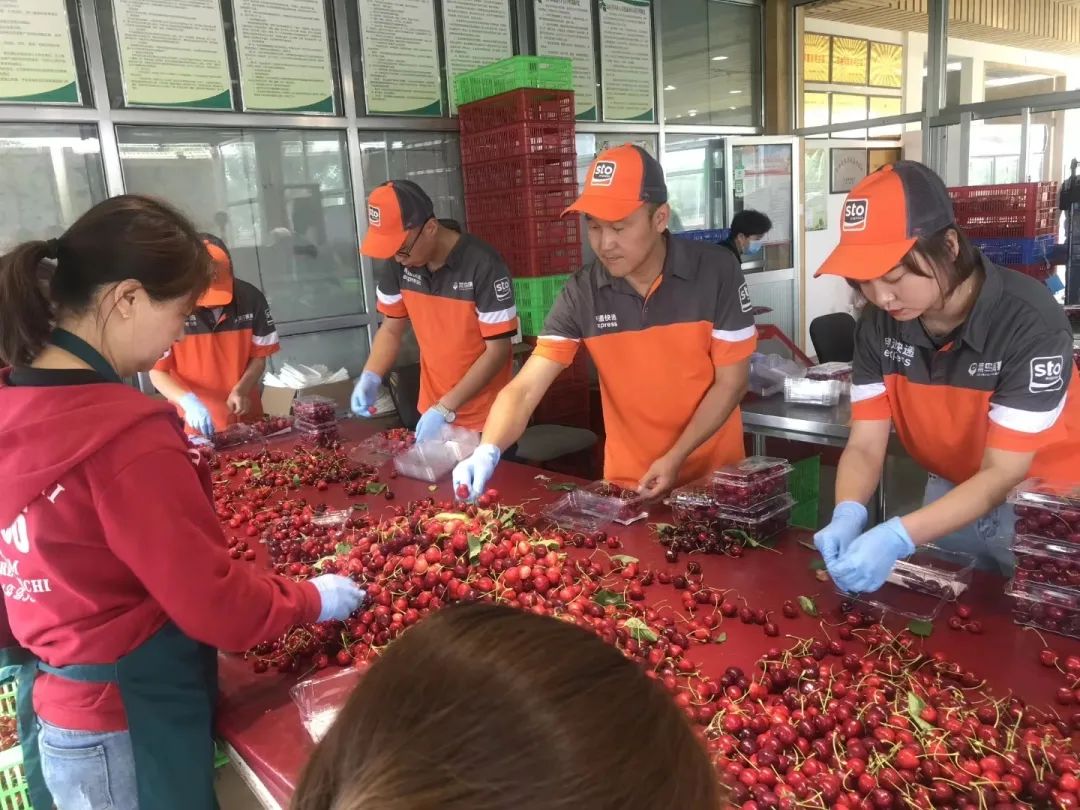 閆軍濤說:“我們沒有巧辦法,只有笨辦法。有同行能做到快遞駐廠,我們就駐扎在果園里。”在當(dāng)?shù)氐墓麍@里,申通的橙色工服若影若現(xiàn),開展收寄業(yè)務(wù)的同時(shí)幫助當(dāng)?shù)剞r(nóng)戶采摘、包裝。對(duì)于杏、櫻桃等易損易腐的產(chǎn)品,申通慶陽(yáng)公司根據(jù)鮮果外形整齊碼放,同時(shí)在縫隙中添加泡沫紙,減少水果碰撞所造成的損壞。