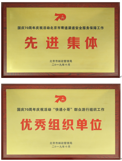 11月14日,國(guó)家郵政局、北京市郵政管理局召開(kāi)國(guó)慶70周年慶祝活動(dòng)北京市寄遞渠道安全服務(wù)保障與“快遞小哥”群眾游行組織工作表彰大會(huì),有8家企業(yè)獲得“國(guó)慶70周年慶?;顒?dòng)北京市寄遞渠道安全服務(wù)工作先進(jìn)集體”榮譽(yù)稱(chēng)號(hào),8家企業(yè)獲得“國(guó)慶70周年慶?;顒?dòng)‘快遞小哥’群眾游行組織工作優(yōu)秀組織單位”榮譽(yù)稱(chēng)號(hào);