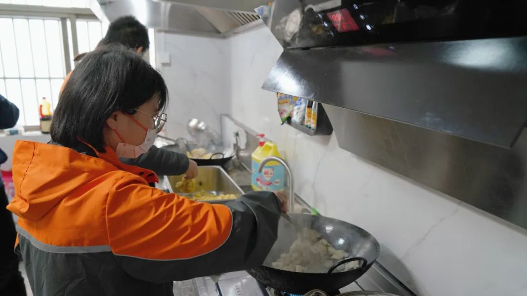 在返程的同一時(shí)間,為了能讓孩子們及時(shí)恢復(fù)體力,關(guān)愛(ài)中心的廚房里,留下的后勤人員正在為孩子們準(zhǔn)備午飯。這些由申通后勤人員親自采買(mǎi)制作的瓜果蔬菜,在孩子們停下自行車(chē)后便被端到了桌前。在飯后志愿者陪同孩子們一起打掃清洗了碗筷。